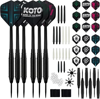 KOTO Accessoire Kit Steeltip Nero 90 Pieces compreso Dardos 2 KOTO Black Brass Darts + 90 Pieces Accessories, 2 Juegos de Punta de Acero, 6 Juegos de Cañas (Nylon), 6 Plumas de 100 Micras (23g) 10,00 € 0,00 €